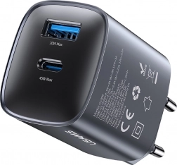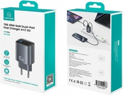 Ta nowoczesna ładowarka wykorzystuje wysoce efektywną technologię GaN, która zapewnia mniejsze rozmiary, niższe nagrzewanie i wyższą sprawność w porównaniu z klasycznymi adapterami. Łączna moc 45 W umożliwia szybkie ładowanie najnowszych urządzeń, a dzięki wsparciu PD/QC poradzi sobie także z wybranymi laptopami z zasilaniem USB‑C do 45 W.