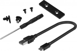 - Obudowa, kabel USB‑A – USB‑C, zestaw montażowy, śrubokręt, instrukcja