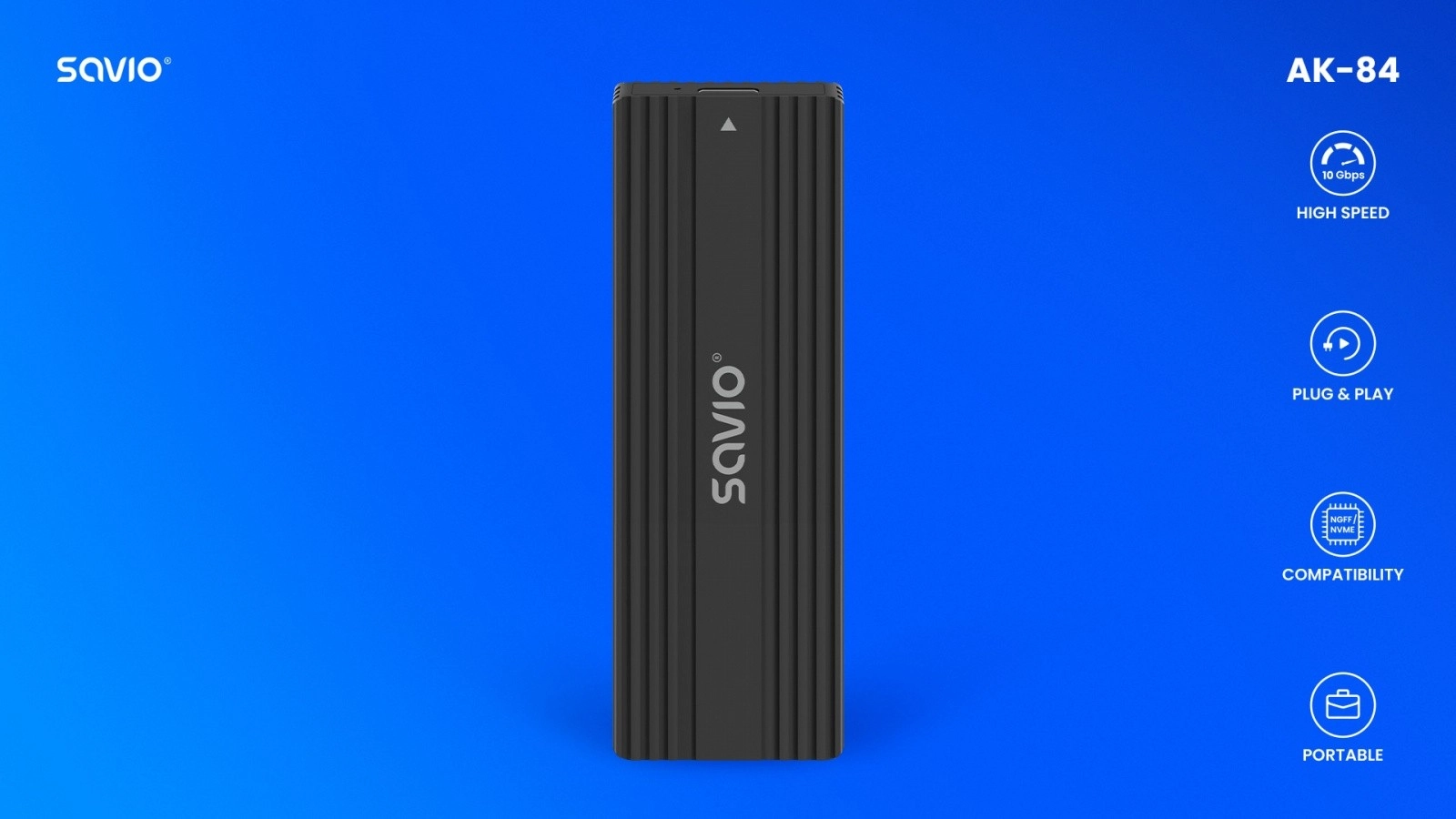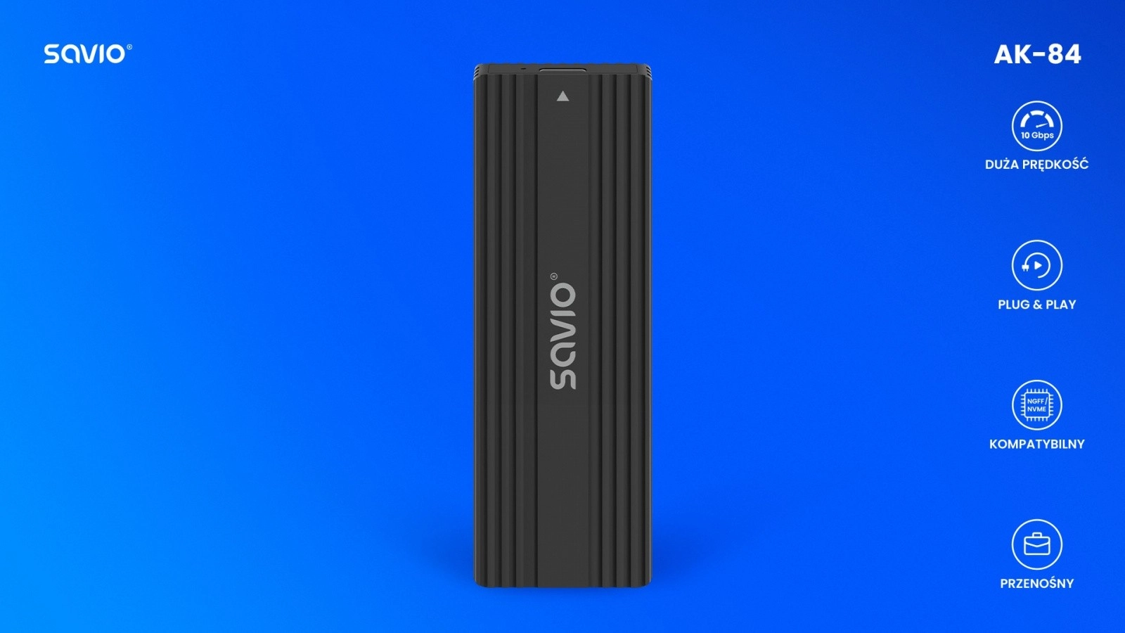 Elegancka i wytrzymała obudowa SAVIO AK‑184 natychmiast zmienia Twój dysk M.2 SSD (NVMe oraz SATA/NGFF) w wydajne przenośne rozwiązanie pamięci masowej. Dzięki USB 3.1 Gen 2 osiąga prędkości do 10 Gb/s, więc duże pliki, kopie zapasowe i gry przeniesiesz w mgnieniu oka. Kompaktowe wymiary i masa zaledwie 44 g czynią z niej idealnego towarzysza w podróży.