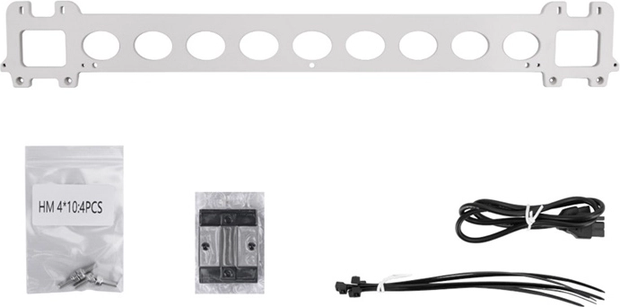 Zawartość opakowania: płyta montażowa, śruby HM 4×10 (4 szt.), blok montażowy, kabel, opaski zaciskowe.