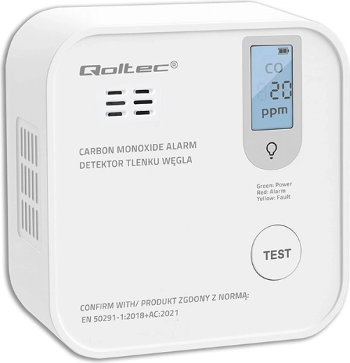 Montaż jest prosty i nie wymaga ingerencji w instalację elektryczną ani gazową. Detektor można przykręcić lub przykleić za pomocą płytki montażowej, ewentualnie ustawić na równej powierzchni. Przycisk TEST umożliwia szybkie sprawdzenie działania alarmu oraz sygnalizacji świetlnej. Urządzenie spełnia normę EN50291-1:2018 + AC:2021 i jest przygotowane na przyszłe wymagania bezpieczeństwa.