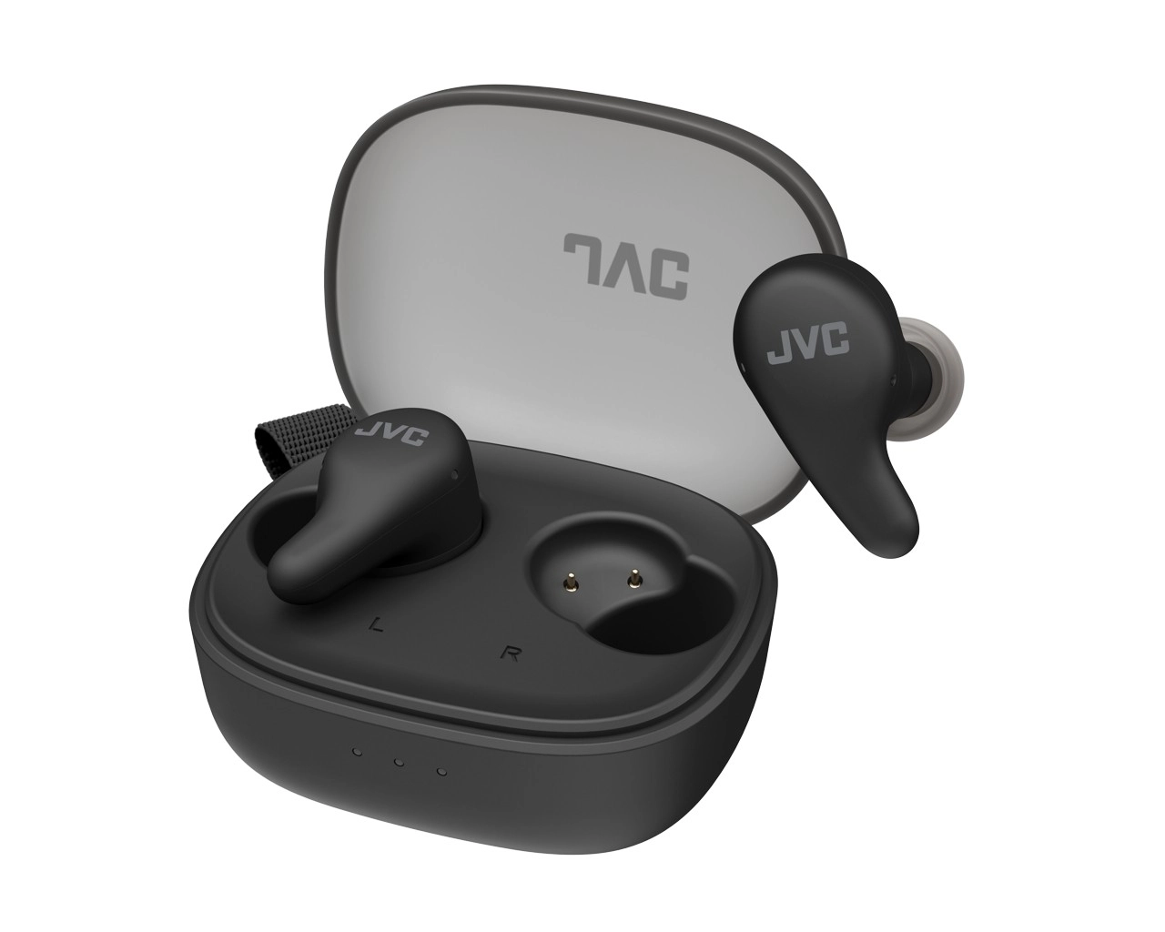 Ciesz się czystym dźwiękiem i wygodą bez kabli z kompaktowymi słuchawkami true wireless JVC Gumy w czarnym kolorze. Oferują aktywne tłumienie hałasu, stabilne i komfortowe dopasowanie, szybkie wyjmowanie z etui oraz nawet 26 godzin słuchania z etui ładującym. Idealne w podróży i na co dzień dzięki niskiej latencji oraz stylowemu, praktycznemu etui z diodami LED.