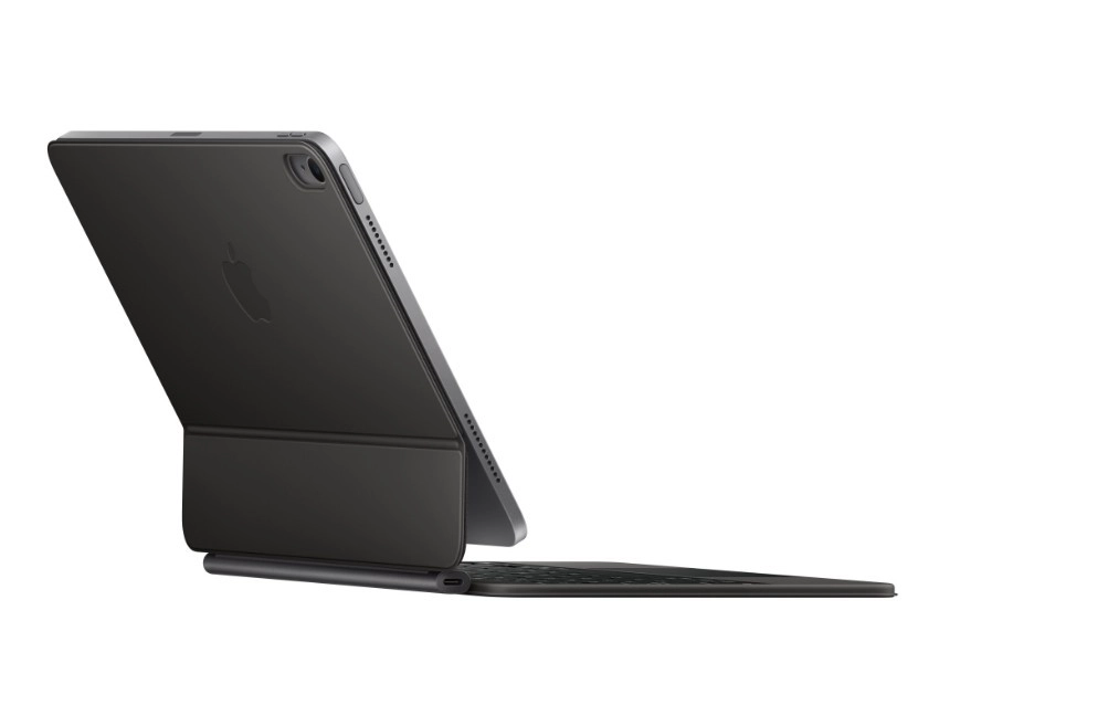 Dzięki eleganckiemu pływającemu stojakowi łatwo ustawisz idealny kąt widzenia, a złącze USB‑C w klawiaturze pozwala ładować iPada, pozostawiając port iPada wolny dla innych akcesoriów. Konstrukcja składa się w ochronne etui, które zabezpiecza iPada Air podczas przenoszenia z obu stron.