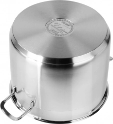 Garnek wykonany jest z wytrzymałej stali nierdzewnej 18/10 o grubych ściankach. Matowa powierzchnia z polerowanym paskiem nadaje elegancki wygląd i zapewnia długą żywotność.