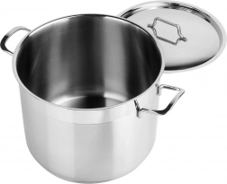 W zestawie znajduje się także pokrywka ze stali nierdzewnej oraz wygodne boczne uchwyty dla bezpiecznej manipulacji. Garnek nadaje się do gotowania z minimalną ilością tłuszczu, bez zbędnej utraty witamin i minerałów. Doskonale sprawdzi się do zup, bulionów, makaronów, sosów oraz wolnego duszenia.