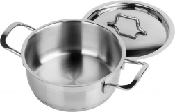 Praktyczny garnek ze stali nierdzewnej z pokrywką o pojemności 1,2 l i średnicy 16 cm do codziennego gotowania i duszenia. Dzięki wielowarstwowemu dnu akutermicznemu równomiernie rozprowadza ciepło, jest odpowiedni do wszystkich typów kuchenek, w tym indukcji i umożliwia oszczędne gotowanie z minimalną ilością tłuszczu. Solidna konstrukcja z stali nierdzewnej 18/10, wygodne uchwyty oraz łatwa pielęgnacja w zmywarce czynią z niego niezawodny dodatek do każdej kuchni.