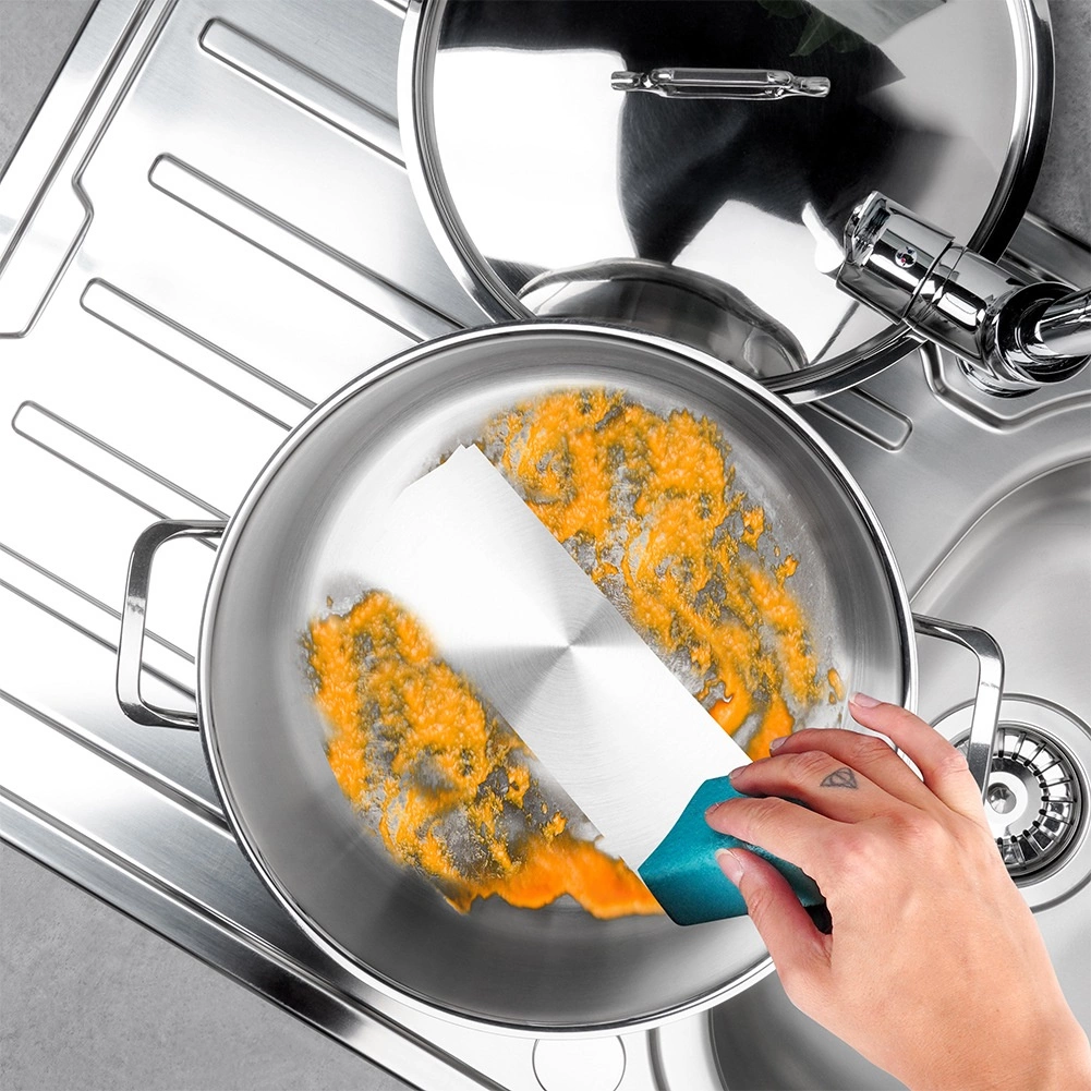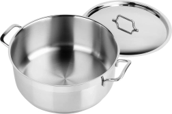 Wielowarstwowe dno efektywnie akumuluje i równomiernie rozprowadza ciepło. Gotowanie jest szybsze, oszczędniejsze i daje doskonałe rezultaty na wszystkich typach kuchenek.
