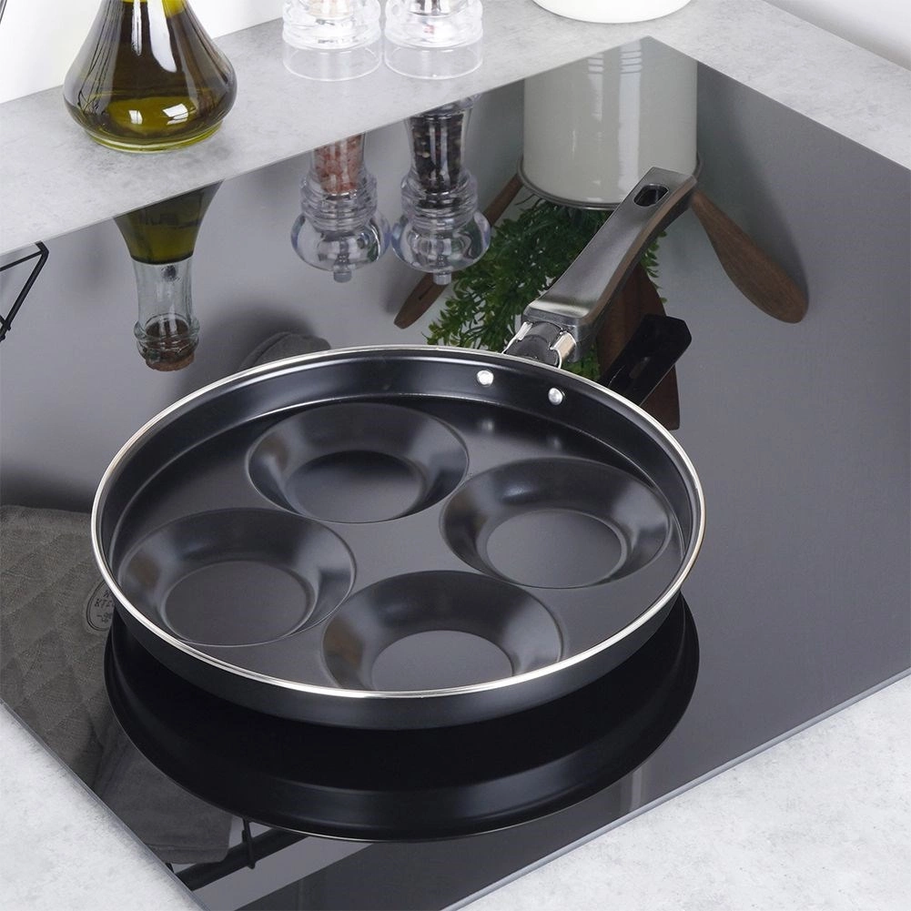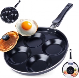 Ta 25‑centymetrowa patelnia z 4 oddzielnymi zagłębieniami (8 cm) ułatwia przygotowanie śniadań i szybkich kolacji. Każda porcja będzie równej wysokości i jednakowo wypieczona – czy robisz jajka, racuchy, czy małe naleśniki. Trwała warstwa nieprzywierająca minimalizuje przywieranie i zapewnia łatwe odchodzenie potraw oraz czyszczenie.