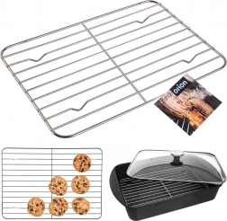 Idealny do studzenia ciasteczek i tortów, ociekania polewy, a także jako wkład do brytfanny dla czystszego i zdrowszego pieczenia.