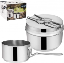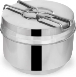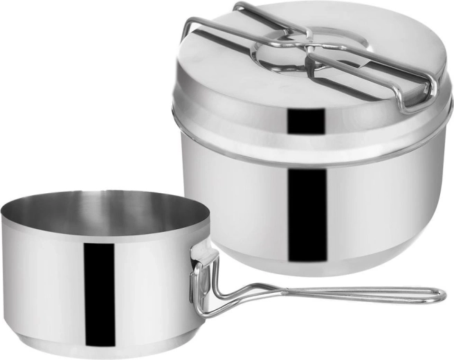 Lekka i poręczna turystyczna menażka z wysokiej jakości stali nierdzewnej ze składanymi uchwytami. Zestaw zawiera dwa oddzielne rondelki (1,5 l i 900 ml) oraz pokrywkę. Idealna na kemping, wyprawy i pikniki. Wytrzymała stal nierdzewna, kompaktowe wymiary i łatwa pielęgnacja w zmywarce.