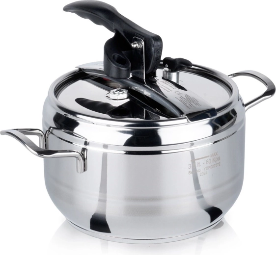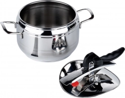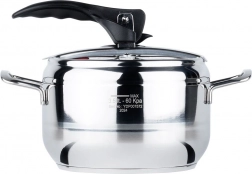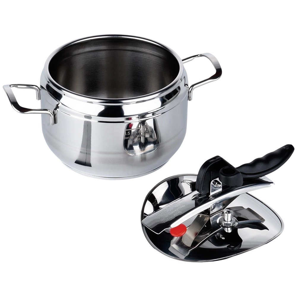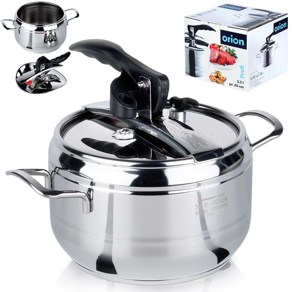 Kompaktowy, nierdzewny szybkowar o pojemności 3,5 l do szybkiego, oszczędnego i zdrowego gotowania pod ciśnieniem. Dzięki 3‑warstwowemu dnu, regulacji ciśnienia i dwóm zaworom bezpieczeństwa skraca czas przygotowania i oszczędza energię. Odpowiedni na gaz, prąd, ceramikę, halogen i indukcję, a garnek można myć w zmywarce (bez pokrywki).