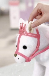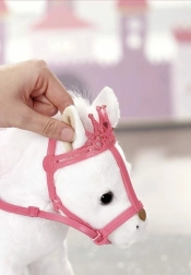 Stylowa uzda z błyszczącą koronką dodaje każdej przejażdżce księżniczkowego charakteru i wspiera zabawę w odgrywanie ról.