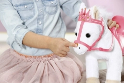 Little Sweet kucyk BABY ANNABELL to mięciutki przyjaciel, który zamienia każdą zabawę w księżniczkową przygodę. Dzięki wygodnemu siodłu i eleganckiej uzdzie z koronką lalka przeżyje bezpieczną przejażdżkę, a dzieci mnóstwo czułych historii.