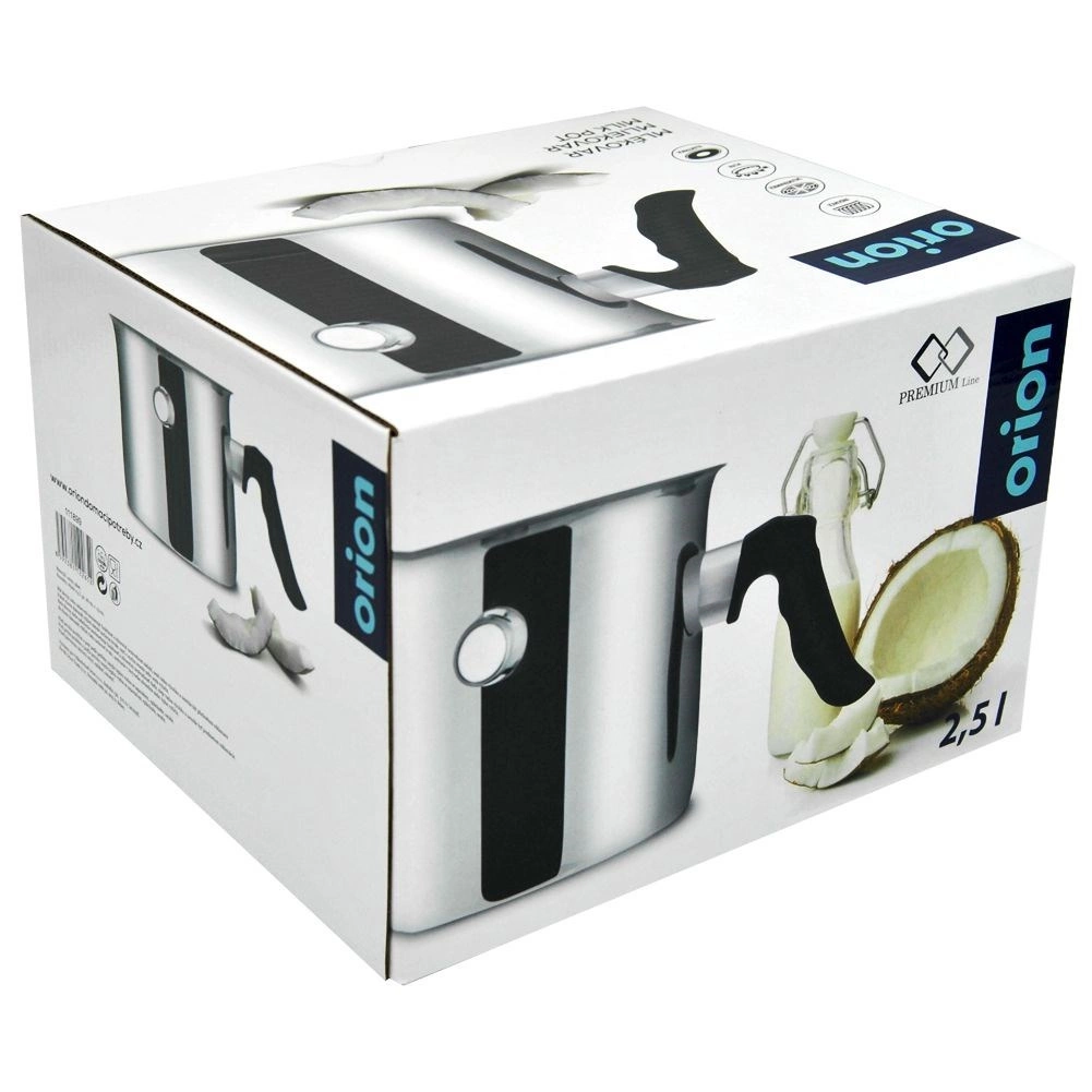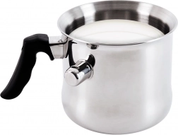 Praktyczny nierdzewny garnek do mleka o pojemności 2,5 l z płaszczem wodnym i gwizdkiem w pokrywce zapobiega przypalaniu mleka lub sosów. Nadaje się na wszystkie typy kuchenek, w tym indukcję, ma ergonomiczną, żaroodporną rączkę i jest łatwy w czyszczeniu, w tym możliwość mycia w zmywarce.