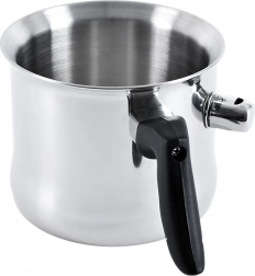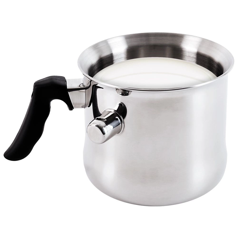 Ten wysokiej jakości garnek ze stali nierdzewnej z podwójną ścianką i płaszczem wodnym jest idealny do delikatnego podgrzewania i gotowania mleka, przygotowania stosów, budyniów oraz rozpuszczania czekolady. Po osiągnięciu wrzenia odezwie się gwizdek, który poinformuje, że mleko jest gotowe, i zapobiegnie jego wykipieniu.