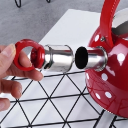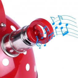 Odporna na ciepło bakelitowa rączka oraz gwizdek, który informuje o wrzeniu, zapewniają komfortowe i bezpieczne nalewanie.
