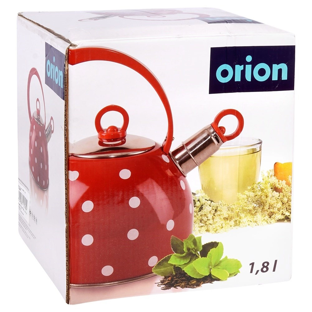 Odkryj elegancki czajnik ORION w popularnym retro stylu. Wysokiej jakości stal nierdzewna zapewnia szybkie nagrzewanie i długą żywotność, gwizdek niezawodnie informuje o punkcie wrzenia, a zdejmowany korek wylewki ułatwia nalewanie. Czajnik idealnie sprawdzi się do codziennego przygotowywania herbaty, kawy i innych gorących napojów.