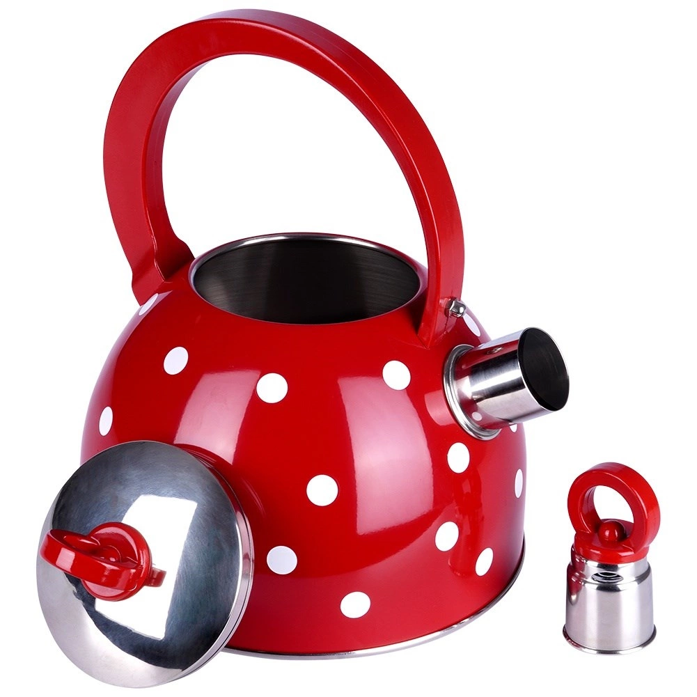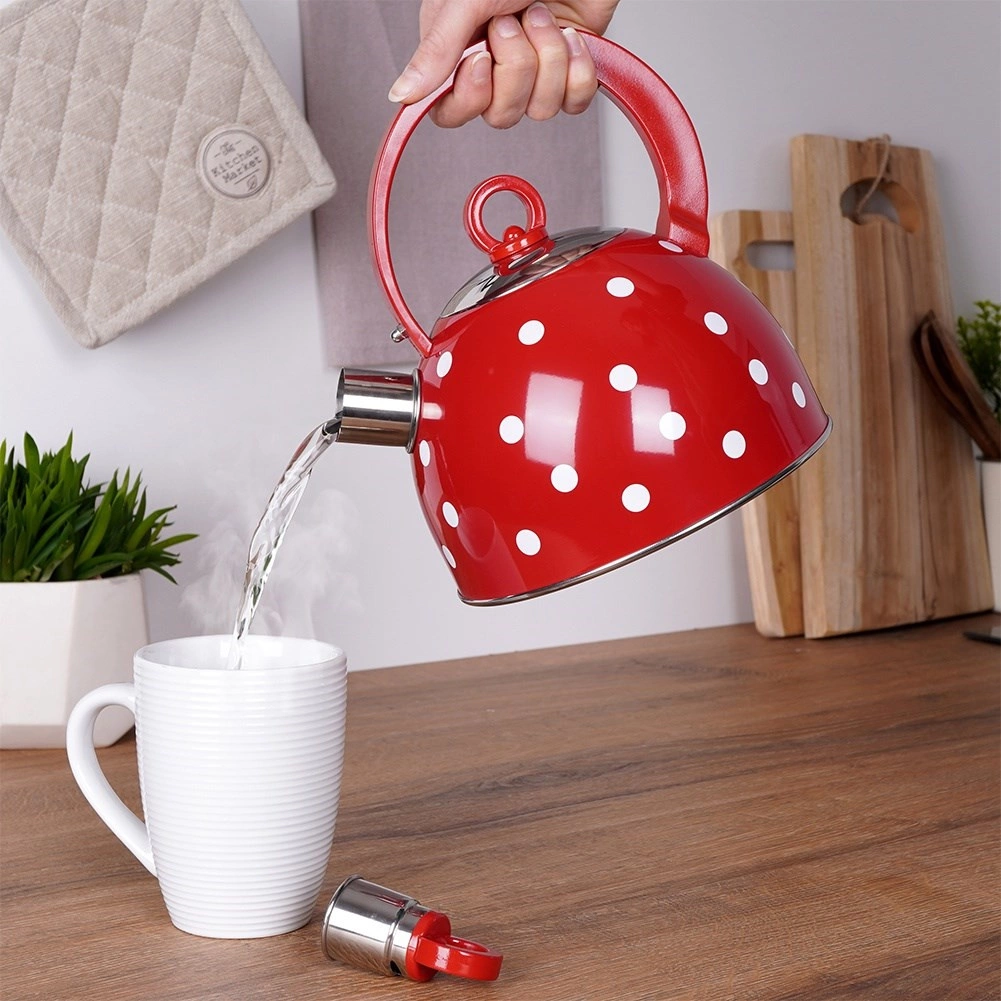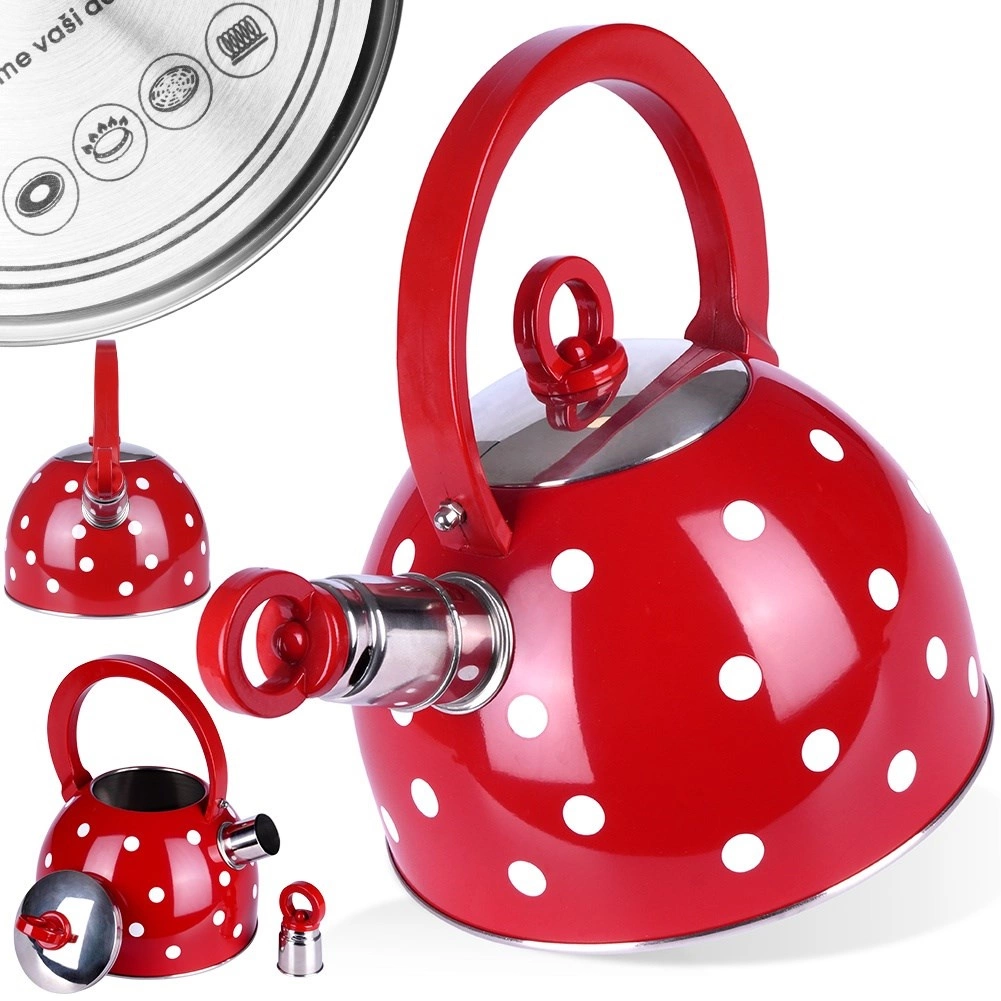Czerwone wykończenie z białymi kropkami zamieni codzienne gotowanie wody w przyjemność i doda kuchni oryginalnego uroku.