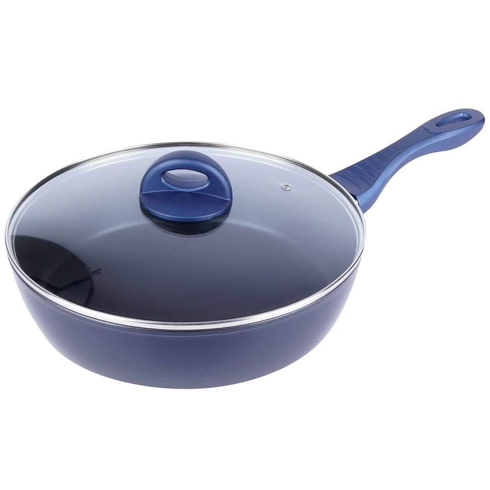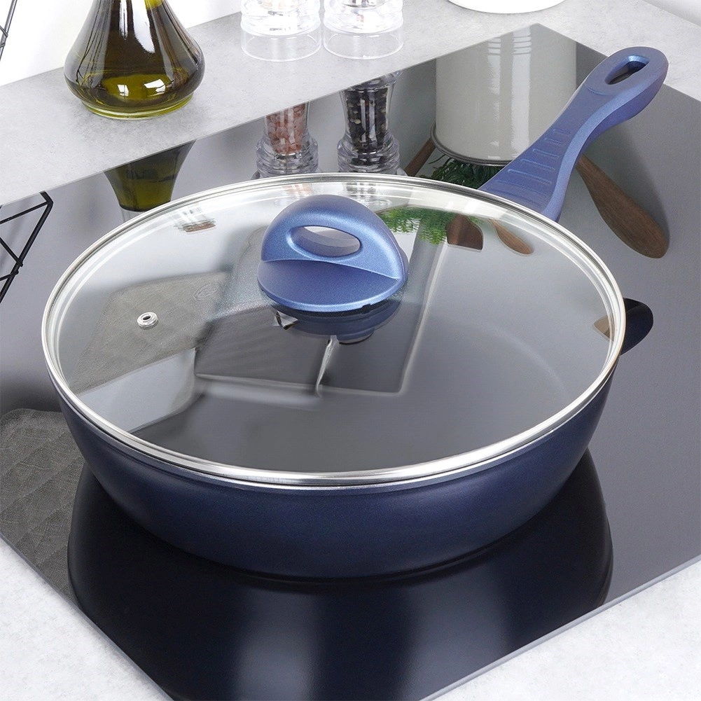 Ta solidna patelnia z odlewu aluminiowego z diamentowo wzmocnioną nieprzywierającą powłoką wyróżnia się doskonałym przewodnictwem ciepła i trwałością nawet przy częstym użytkowaniu. Dzięki wysokim ściankom jest idealna do smażenia, podsmażania i duszenia, a szklana pokrywka z zaworem pary pozwala mieć gotowanie pod kontrolą.