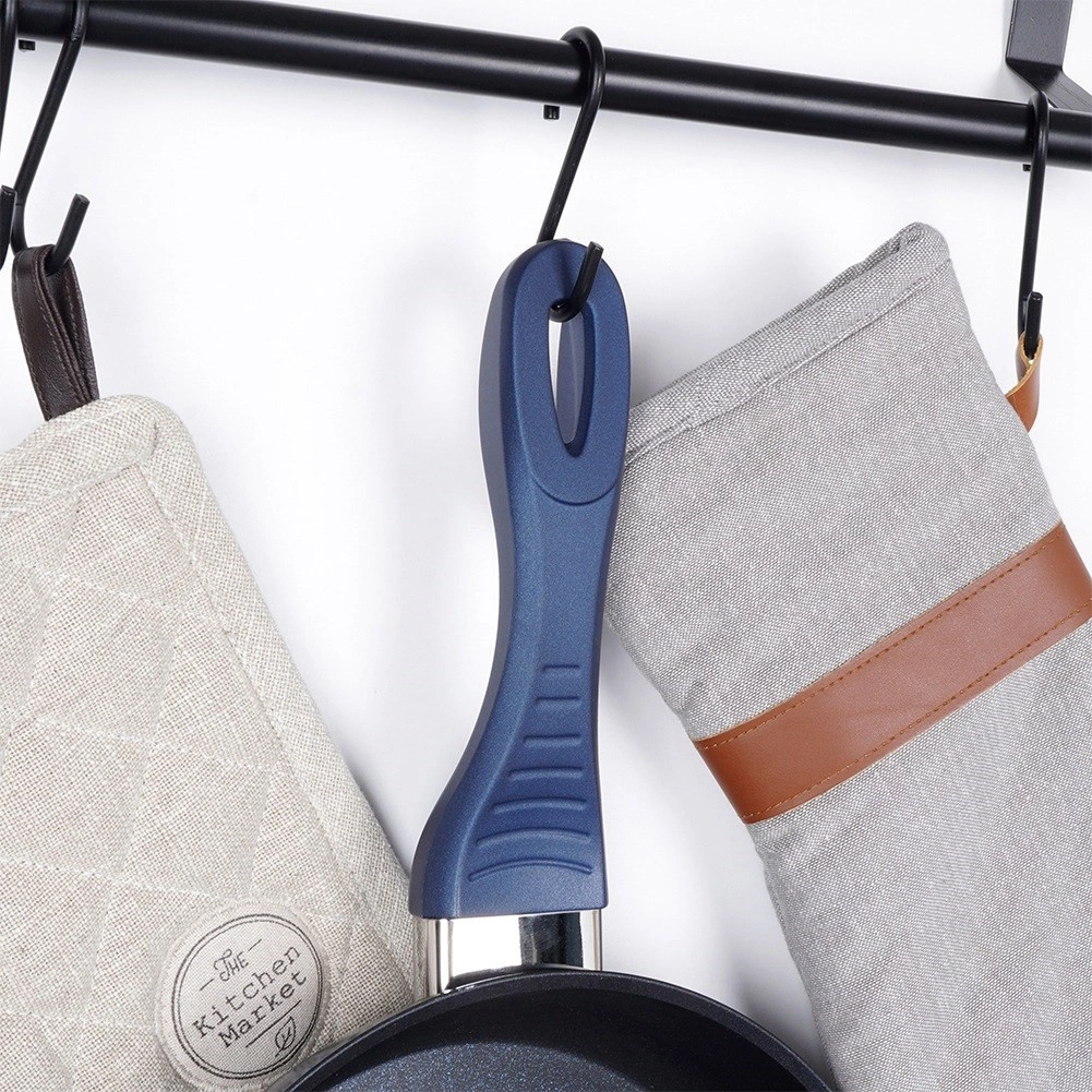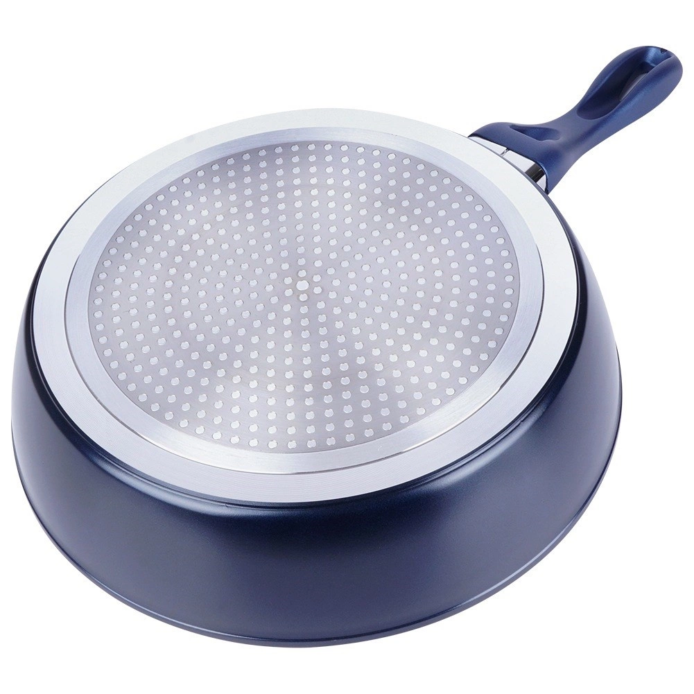 Powłoka bez PFOA i PTFE jest bezpieczna dla żywności, nie pochłania zapachów i ułatwia przygotowanie potraw o niskiej zawartości tłuszczu. Patelnia szybko się nagrzewa i równomiernie rozprowadza ciepło, oszczędzając energię i czas. Ergonomiczny uchwyt z silikonową powłoką jest wygodny w trzymaniu i nie nagrzewa się.
