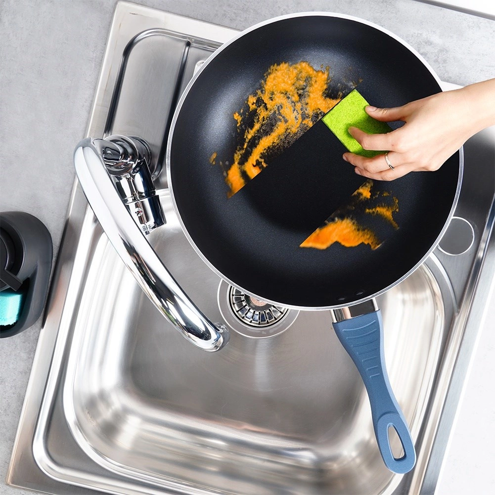 Wytrzymała ceramiczna matryca z cząsteczkami diamentu doskonale przewodzi ciepło i nie zawiera PFOA ani PTFE. Patelnia jest kompatybilna z gazem, kuchenkami elektrycznymi, ceramicznymi, halogenowymi i indukcyjnymi. Ergonomiczny uchwyt z antypoślizgowym silikonem pozostaje chłodny i wygodny w dłoni, zewnętrzne niebieskie wykończenie ożywi każdą kuchnię.