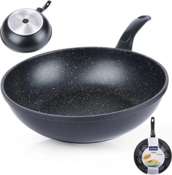 Ergonomiczny uchwyt pozostaje chłodny w dotyku i zapewnia bezpieczne manewrowanie. Dzięki uniwersalnej kompatybilności ze wszystkimi typami kuchenek, w tym indukcją, oraz możliwości mycia w zmywarce, wok jest praktycznym pomocnikiem do codziennego gotowania. Ponadczasowy wygląd z granitową/„kamienną” strukturą stylowo dopełni Twoją kuchnię.