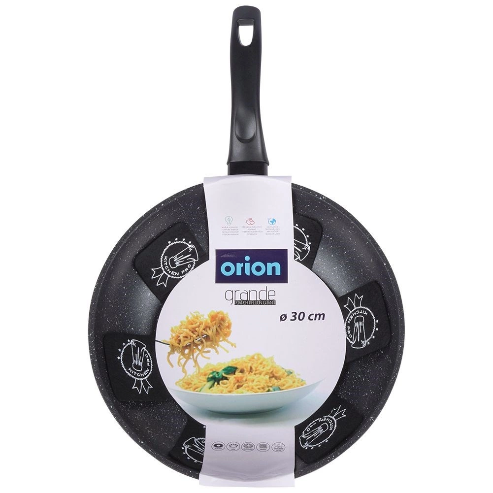 Wok GRANDE 30 cm łączy masywne aluminiowe korpusy dla szybkiego i równomiernego rozprowadzania ciepła z wytrzymałą nieprzywierającą warstwą granitową, która ułatwia gotowanie i czyszczenie. Idealny do podsmażania, smażenia i duszenia mięsa i warzyw, świetnie sprawdzi się w daniach inspirowanych kuchnią azjatycką, w tym w szybkich makaronach i stir-fry.