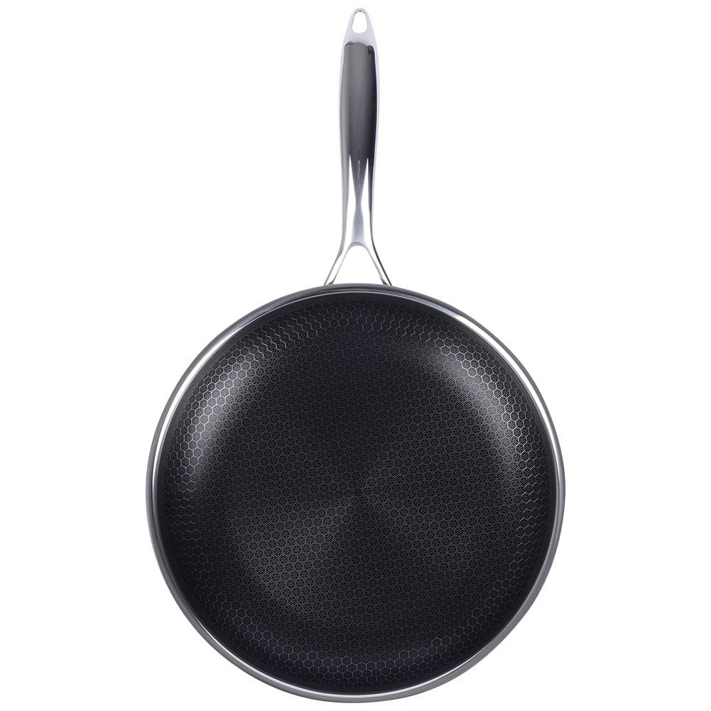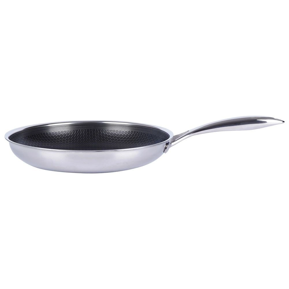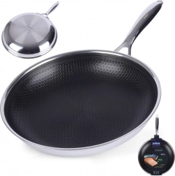 Premium stalowa patelnia COOKCELL o średnicy 28 cm łączy stal nierdzewną i hybrydową powłokę nieprzywierającą o strukturze plastra miodu, zapewniając szybkie i równomierne smażenie. Jest odporna na zarysowania, wytrzymuje wysokie temperatury i nadaje się na wszystkie typy kuchenek, w tym indukcję, a także do piekarnika do 260 °C. Łatwa w czyszczeniu, można myć w zmywarce i umożliwia gotowanie z minimum tłuszczu.