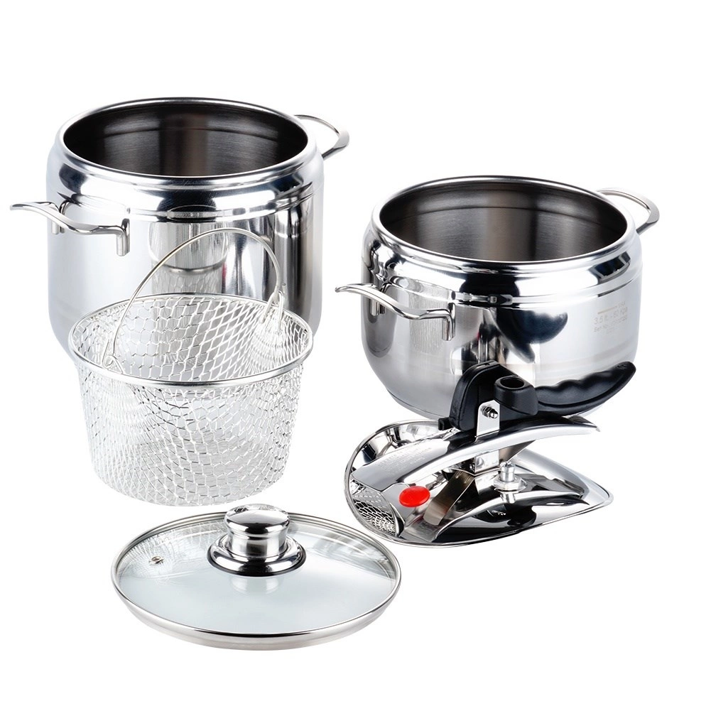 - 2x szybkowar (3,5 l i 5 l), 1x pokrywa ciśnieniowa, 1x pokrywa szklana, 1x metalowy kosz