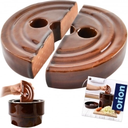 Dwie ceramiczne połówki z centralnymi otworami wygodnie się wkłada i wyjmuje z garnka – idealne do naczyń z węższą szyjką.