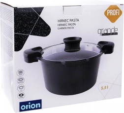 Uniwersalny granitowy garnek ORION GRANDE o pojemności 5,5 l i średnicy 24 cm z praktyczną pokrywką do odcedzania, która ułatwia zlewanie wody. Dzięki nieprzywierającej granitowej powłoce bez PFOA i PTFE, szybkiemu i równomiernemu nagrzewaniu oraz indukcyjnemu dnu jest idealny do codziennego gotowania, duszenia oraz przygotowywania makaronu i ziemniaków. Ergonomiczne uchwyty zapewniają bezpieczny chwyt, a szklana pokrywka umożliwia kontrolę gotowania.