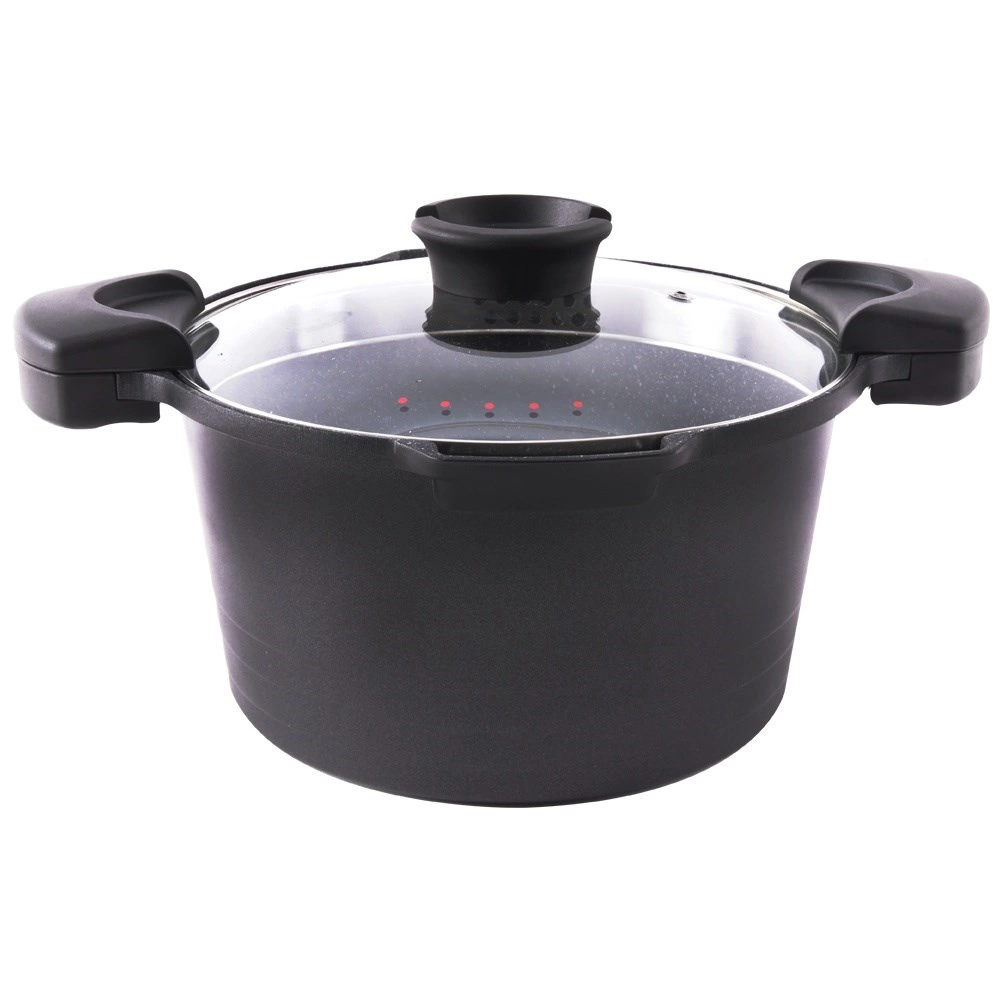 Dno ze stalowo-indukcyjną wkładką zapewnia szybkie i równomierne rozprowadzanie ciepła na wszystkich typach kuchenek, w tym indukcyjnych. Garnek nadaje się do zmywarki i można go używać również w piekarniku (bez pokrywki). Praktyczne boczne wylewki oraz szerokie odporne na ciepło uchwyty zwiększają bezpieczeństwo i wygodę użytkowania.