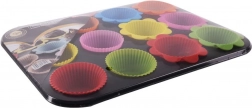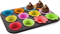 Praktyczna forma do muffinek z 12 kolorowymi silikonowymi foremkami ułatwia pieczenie słodkich i wytrawnych wypieków. Dzięki nieprzywierającej powłoce i trwałym silikonowym foremkam ciasto nie przywiera, a muffinki łatwo się wyjmują. Forma pozwala przygotować 12 sztuk jednocześnie, a foremki można wielokrotnie używać w piekarniku, kuchence mikrofalowej i zamrażarce.
