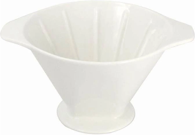 Praktyczny porcelanowy dripper do przygotowania kawy filtrowanej na papierowym filtrze. Z wysokiej jakości białej porcelany, wygodny w użyciu i wielokrotnego użytku. Idealny do codziennego parzenia aromatycznej kawy filtrowanej w domu i w biurze.