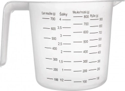 - Dokładne pomiary – podział co 50 ml i 100 g, czytelne wartości od 200 do 1000 ml oraz od 100 do 900 g.