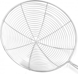 Uniwersalna nierdzewna łyżka cedzakowa o długości 35 cm jest niezastąpiona przy gotowaniu zup, sosów i potraw smażonych. Solidna konstrukcja ze stali nierdzewnej zapewnia długą żywotność, łatwą pielęgnację i higieniczne użytkowanie. Otwarta druciana głowica szybko odprowadza płyn i tłuszcz, dzięki czemu jedzenie pozostaje chrupiące i nie wilgotnieje.