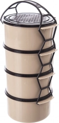 Ciesz się wygodnym przenoszeniem obiadów i kolacji dzięki menażce z czterema oddzielnymi pojemnikami o pojemności 1,5 l. Każdy pojemnik ma własną pokrywkę, a wszystko razem utrzymuje solidna rama z rączką, dzięki czemu możesz bezpiecznie przewozić różne dania osobno. Idealna w podróży, na wycieczki, kemping oraz do codziennego noszenia posiłków do pracy.