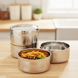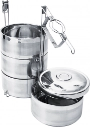 Oddzielaj kolejne dania bez mieszania smaków. Każda miska ma pokrywkę, a wszystko zabezpiecza solidna rama z klamrami i górnym uchwytem.
