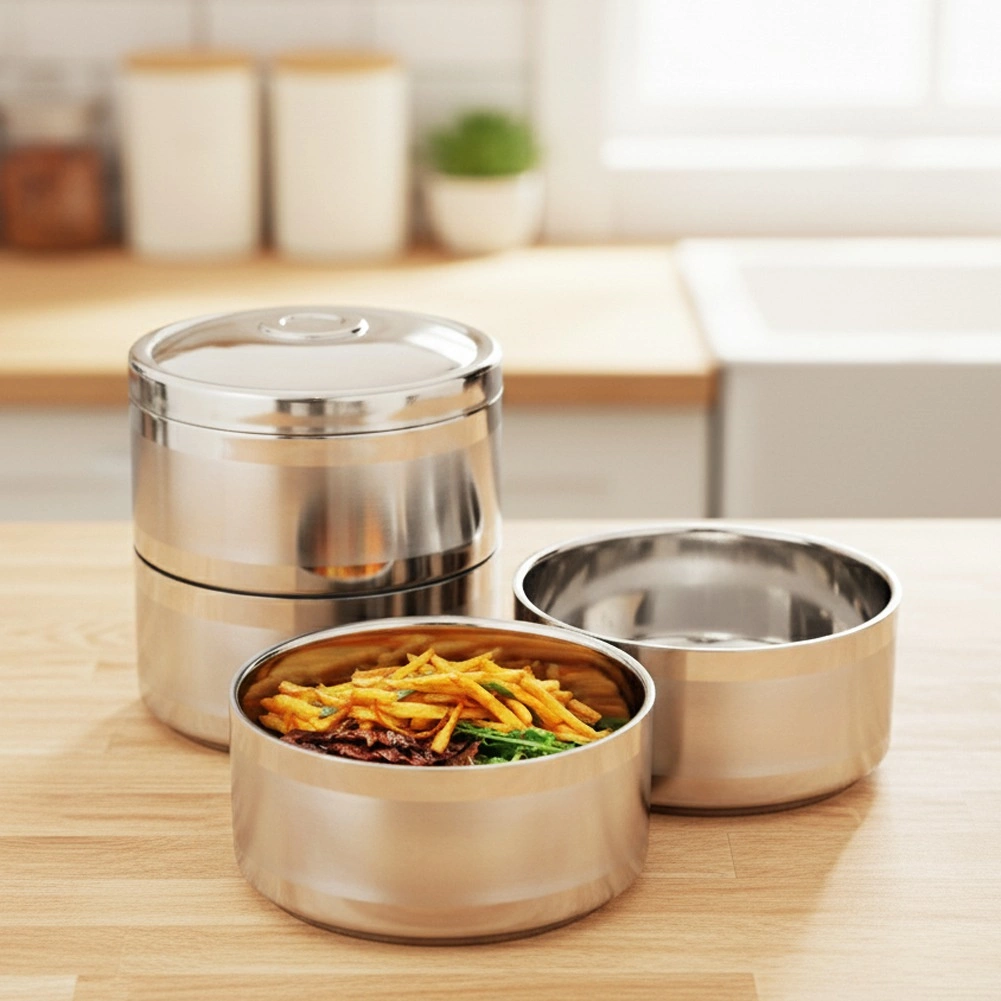 Wielopoziomowy termos obiadowy z wysokiej jakości stali nierdzewnej jest idealny do codziennego noszenia posiłków oraz weekendowych wypadów. Cztery oddzielne pojemniki pozwalają rozdzielić zupę, danie główne i dodatki, a izolacja próżniowa pomaga dłużej utrzymać wymaganą temperaturę. Stabilna rama z zatrzaskowymi klamrami i górnym uchwytem ułatwia bezpieczny transport.