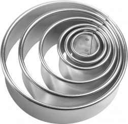 Odkryj uniwersalny zestaw okrągłych wykrawaczy, dzięki którym wyczarujesz klasyczne kruche ciasteczka, pierniczki oraz nowoczesne ciastka z witrażem. Dzięki pięciu rozmiarom z łatwością stworzysz efektowne wielopoziomowe kształty, mini kanapki czy ozdoby z fondantu. Wysokiej jakości stal nierdzewna gwarantuje długą żywotność i precyzyjne cięcie.