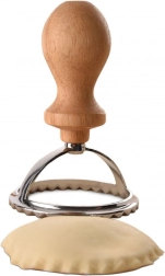Ułatw sobie domowe przygotowywanie ulubionych makaronów i wypieków. Metalowa wykrawaczka z ergonomiczną drewnianą rączką wycina regularne kształty i jednocześnie elegancko dociska oraz łączy brzegi. Okrągły kształt z pofalowaną krawędzią nada ravioli czy pierogom profesjonalny wygląd i skróci czas pracy w kuchni.