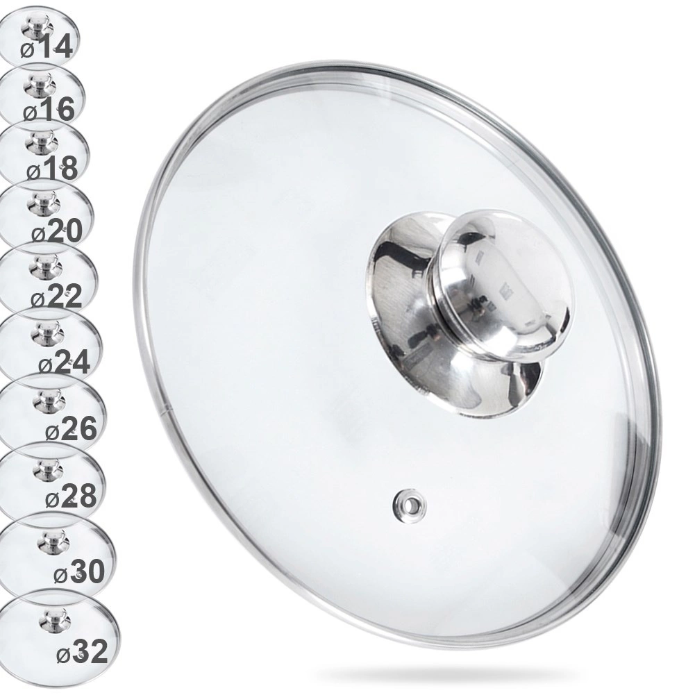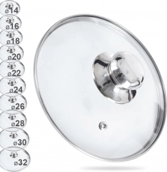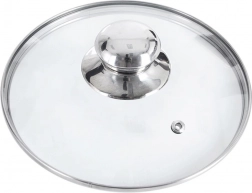 Uniwersalna szklana pokrywka o średnicy 16 cm z nierdzewnym rantem i wygodnym uchwytem. Szkło żaroodporne umożliwia kontrolę gotowania bez podnoszenia, a zawór pary odprowadza jej nadmiar, zapobiegając wykipieniu. Dzięki solidnej stalowej obręczy dobrze i szczelnie przylega do garnków, patelni i rondli.
