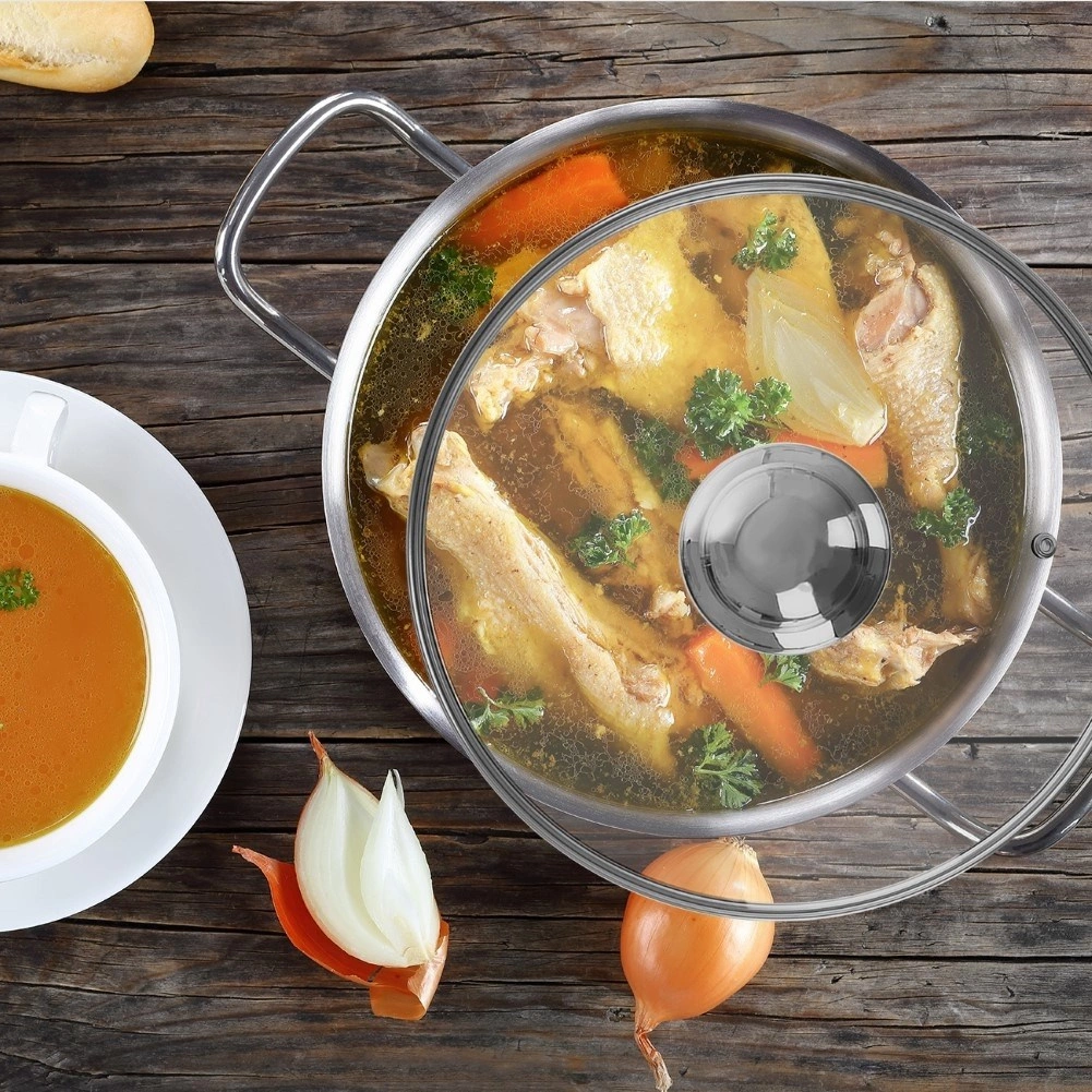 Solidna stalowa obręcz i gałka gwarantują trwałość i długą żywotność. Zintegrowany otwór do ujścia pary minimalizuje kondensację i zapobiega wykipieniu. Dzięki mocnemu rantowi pokrywka się nie zsuwa i ściśle przylega do naczynia. Doskonały wybór do codziennego gotowania, duszenia i powolnego gotowania.