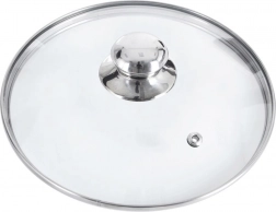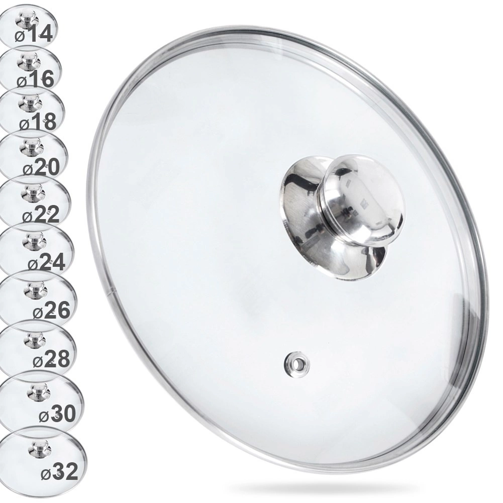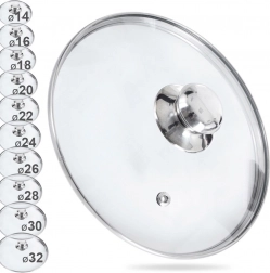 Uniwersalna szklana pokrywa o średnicy 26 cm z żaroodpornym szkłem, stalowym rantem i gałką oraz zaworem pary. Dzięki przezroczystemu szkłu łatwo skontrolujesz gotowanie bez podnoszenia, pokrywa ściśle przylega i pomaga przyspieszyć przygotowanie potraw, a także ograniczyć pryskanie wody i tłuszczu.