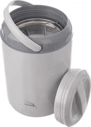 Wytrzymałe termoetui w szarym kolorze poprawia utrzymanie temperatury potraw i umożliwia wygodne przenoszenie dzięki praktycznemu uchwytowi.