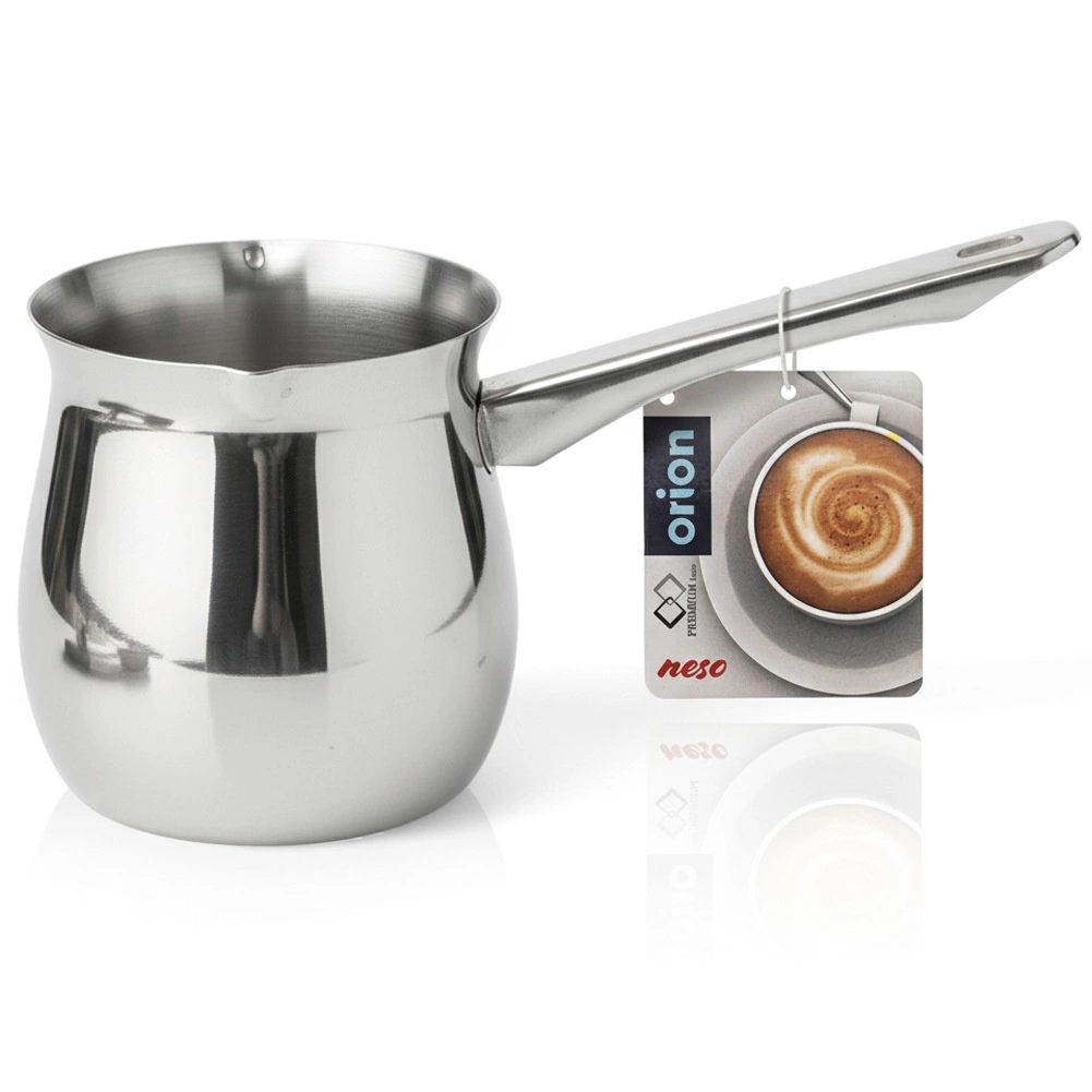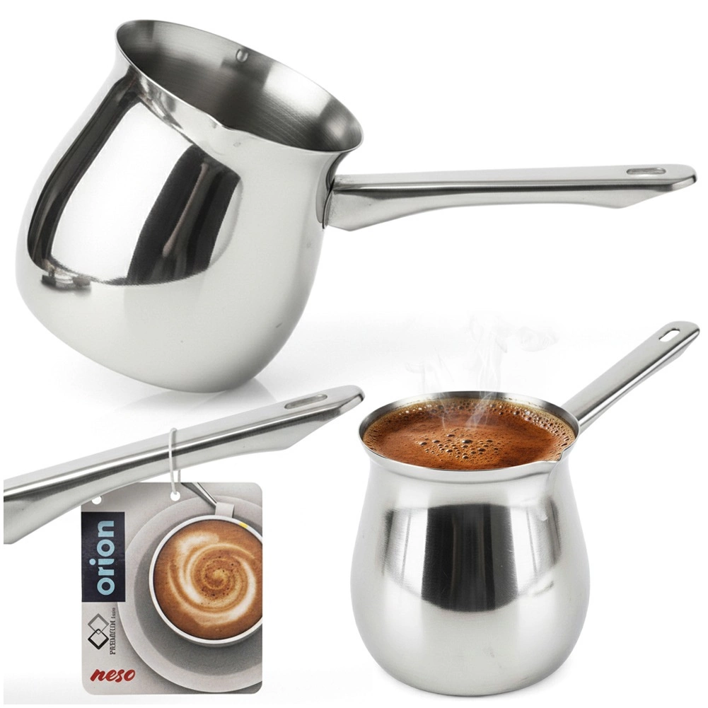 Odkryj prosty i pachnący rytuał parzenia kawy jak z kawiarni. Stalowy tygielek o pojemności 400 ml jest idealny do kawy po turecku, a także do podgrzewania mleka i innych napojów. Wysokiej jakości stal gwarantuje długą żywotność, łatwą pielęgnację i elegancki wygląd pasujący do każdej kuchni.