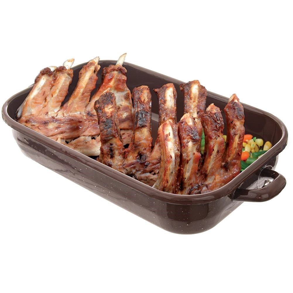 Ta wytrzymała, prostokątna brytfanna z wysokiej jakości stali z emaliowaną powłoką świetnie sprawdzi się do codziennego gotowania i świątecznego pieczenia. Emalia jest bezpieczna dla zdrowia i odpowiednia również dla alergików. Wymiary zewnętrzne 34 × 18,5 × 6,5 cm oraz wewnętrzne 26 × 16 × 6 cm zapewniają wystarczająco dużo miejsca do przygotowania różnorodnych potraw.