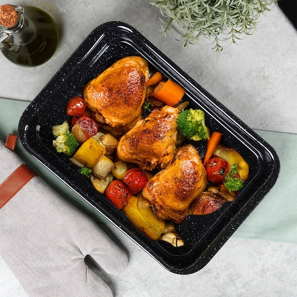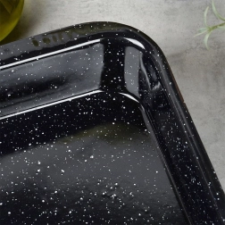 Świetnie nadaje się do przygotowywania wszelkich rodzajów mięs, mieszanek warzywnych, ciast oraz pizzy z wysokim brzegiem. Emalia jest bezpieczna dla zdrowia i ceniona za długą żywotność. Naturalne cechy produkcyjne emalii (np. drobne nierówności) nie mają wpływu na funkcjonalność ani jakość potraw, a podkreślają tradycyjne wykonanie.