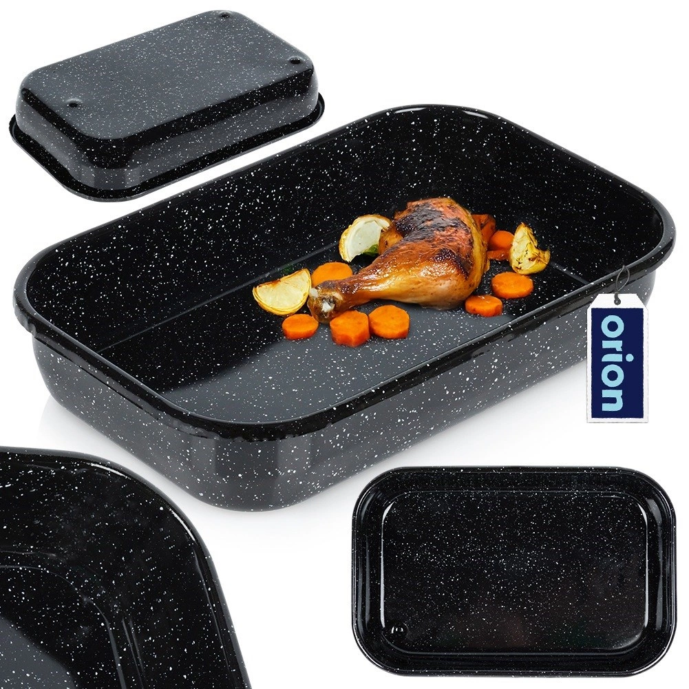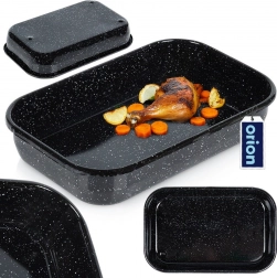 Emaliowana brytfanna ORION w eleganckim czarnym kolorze jest trwała, uniwersalna i gotowa na codzienne pieczenie. Dzięki wyższym ściankom świetnie zatrzymuje soki i tłuszcze, zapewnia równomierne wypieczenie oraz wygodne serwowanie prosto z piekarnika na stół.