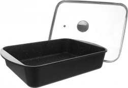 Solidna brytfanna GRANDE o wymiarach 35 × 22,5 × 8 cm (wysokość z pokrywą 12 cm) to wszechstronna pomoc w każdej kuchni. Odlewane aluminiowe korpus świetnie się nagrzewa, a granitowa nieprzywierająca warstwa PFLUON GRANIT bez PFOA i PTFE minimalizuje przypalanie i pozwala gotować z mniejszą ilością tłuszczu. Szklana pokrywa z metalowym uchwytem i zaworem parowym utrzymuje soczystość potraw i ułatwia kontrolę procesu gotowania.
